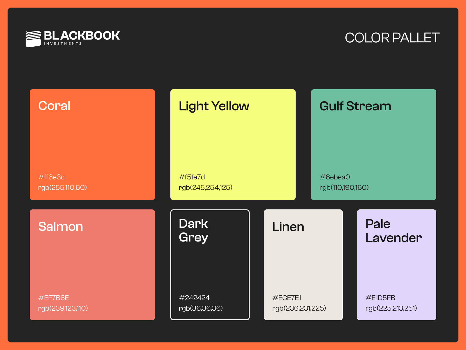 We've crafted a visual identity that positions BlackBook as the established leader in their market. This new branding targets tech-savvy investors and sets the company apart from its major competitors.